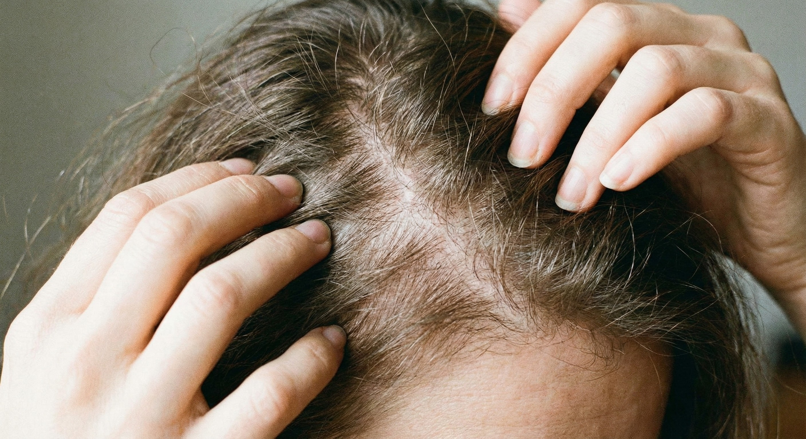 分け目やつむじの地肌が目立つ